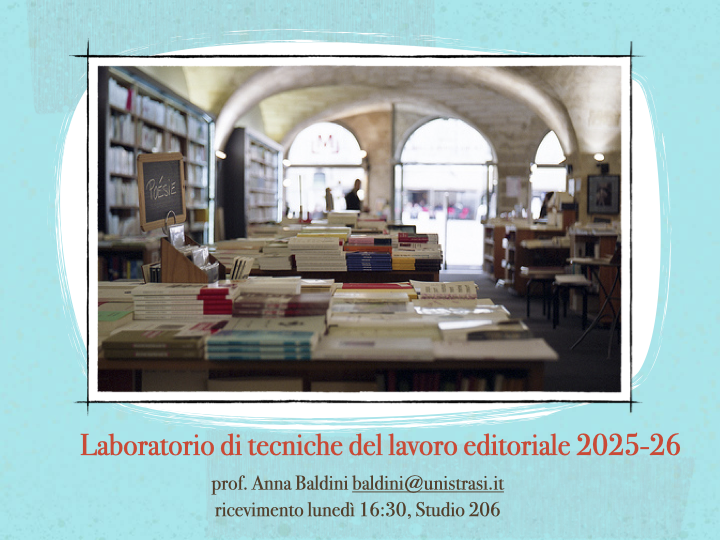 - Eventuali materiali verranno depositati dal docente presso la Biblioteca dell’Università e pubblicati sulla piattaforma e-learning.